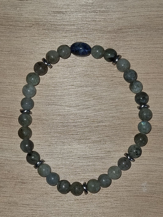 Bracelet perles naturelles labradorite et une lapi lazuli