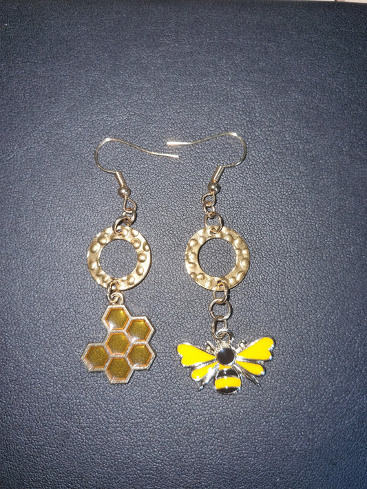 Originale boucles d'oreilles abeilles. Crochets acier inoxydable