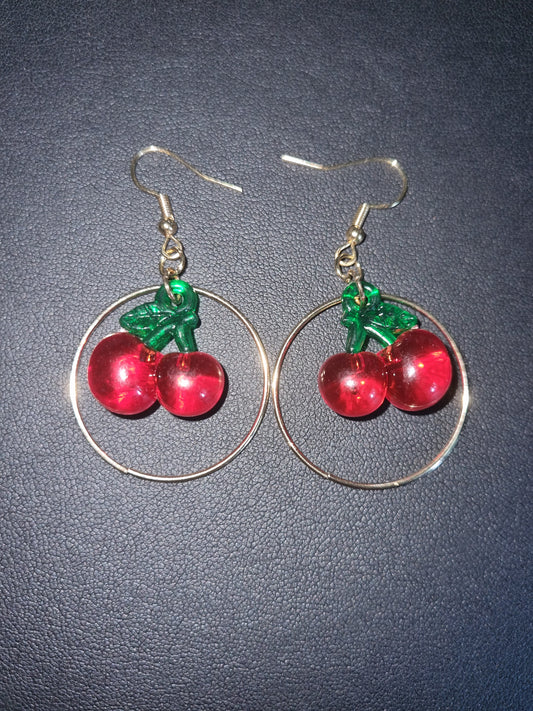 Boucles fantaisie originales petites cerises . Crochets acier inoxydable .