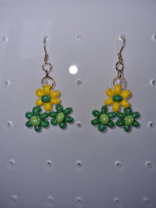 Boucles d'oreilles fantaisie fleurs en perles en verre
