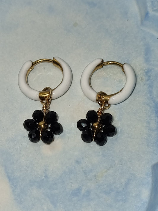 Boucles d'oreilles rondes acier inoxydable avec fleurs petites perles.