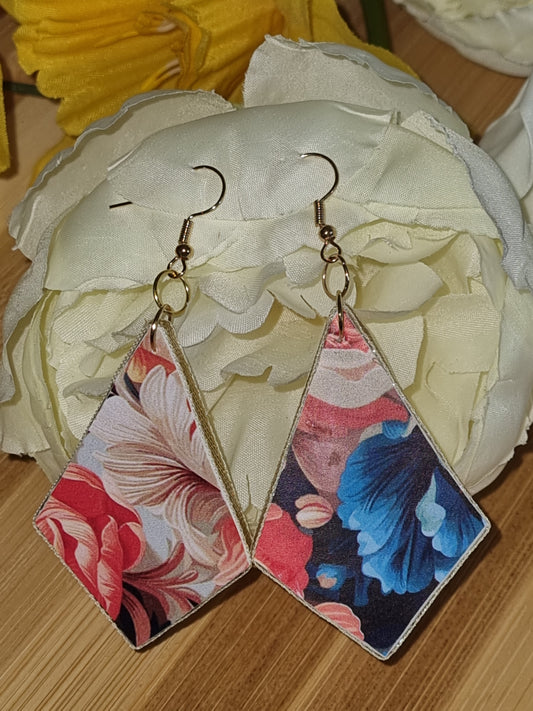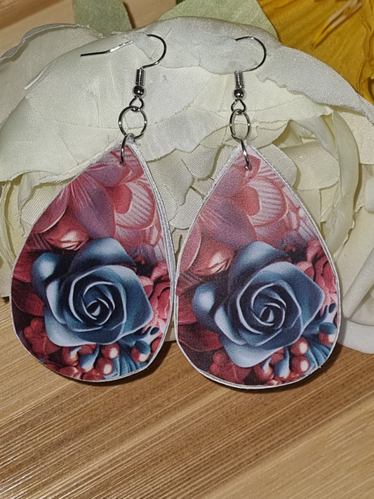 Boucles simple petites fleurs bleues crochets acier inoxydable.