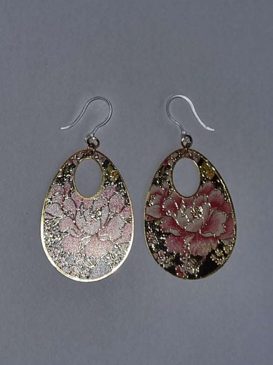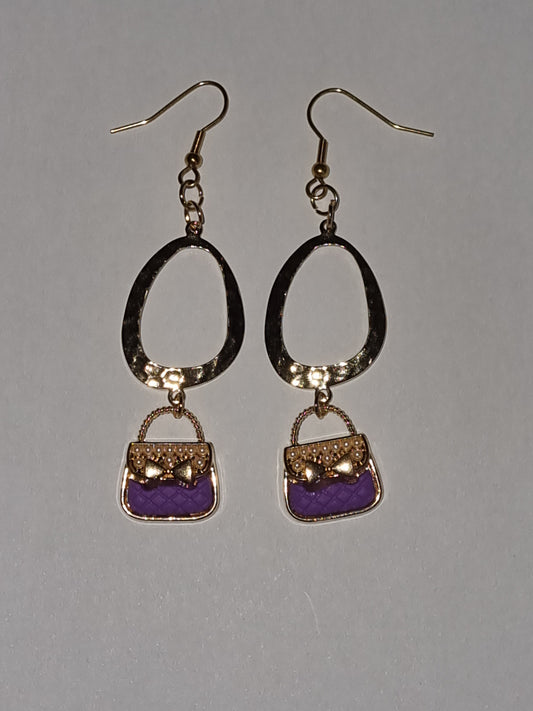 Jolies boucles d'oreilles petites fleurs violette connecteurs couleur or. Crochets acier inoxydable