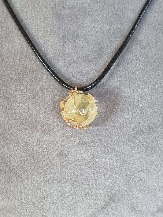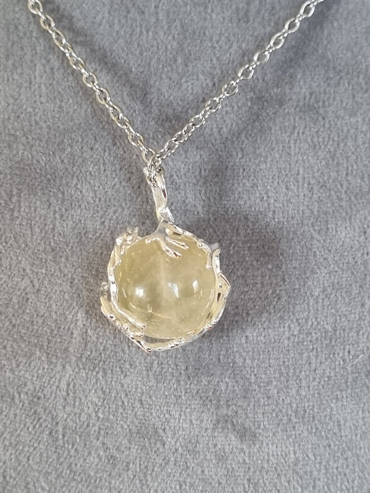 Pendentif perles naturelles citrine enfermé dans un pendentif.