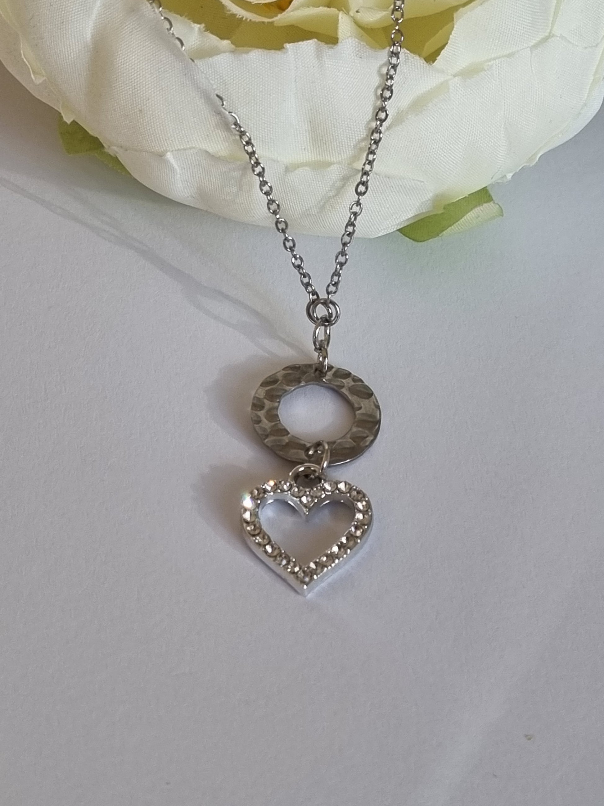 Pendentif coeur monté sur chaîne acier inoxydable.